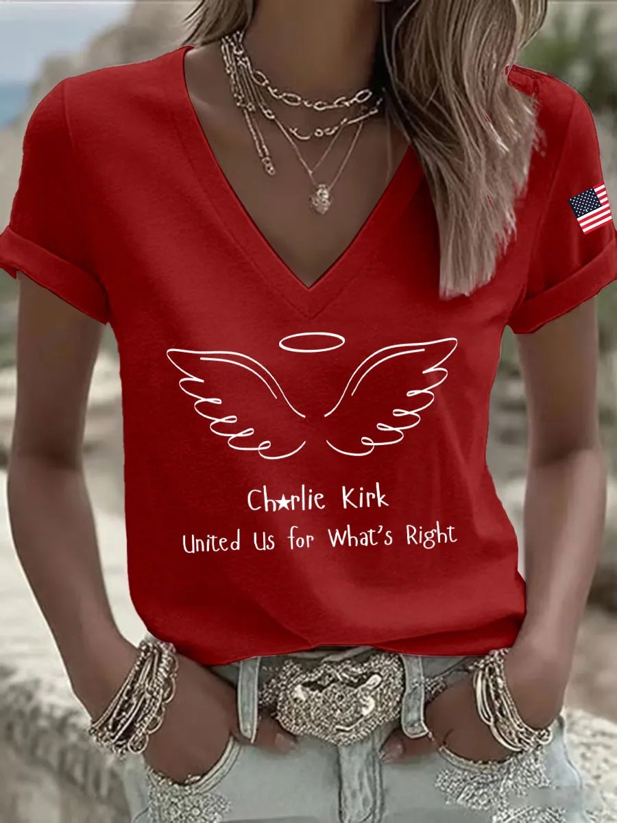Charlie Kirk Freedom V-Neck Shirt Words Are Stronger Than Bullets Proud Tribute Clothing.